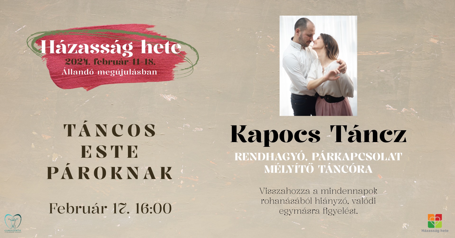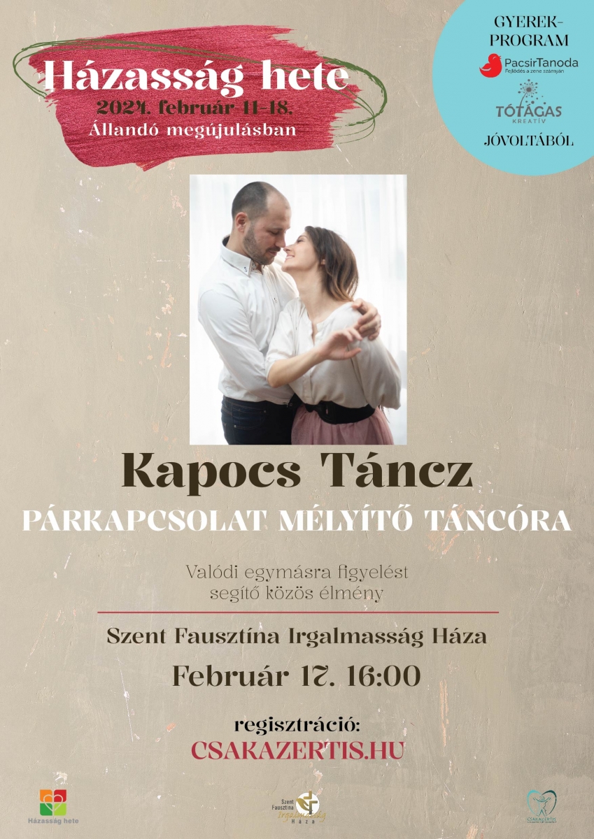 Kifejezetten csak párkapcsolatban, vagy házasságban élő pároknak szóló párkapcsolat fókuszú tánckurzus. Táncos előképzettséget nem igényel, sőt teljesen kezdőknek is ajánlott.